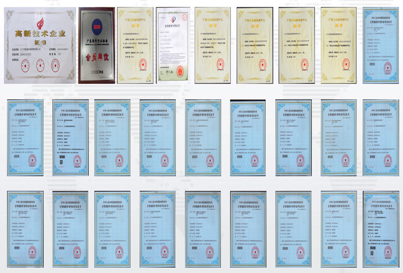 联壹公司自2002年创立,扎根江门,面向全国,拥有软件系统用户超30000家,员工超100人,2014年被评为“双软企业”,2016年被评为“高新技术企业”,拥有软件著作权30多个,高新技术产品5个。