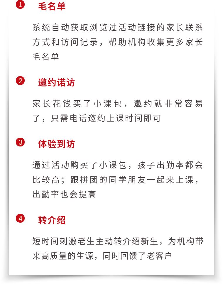 另外一场活动解决能够帮助机构轻松解决毛名单、邀约诺访、体验到访、转介绍四大数据入口
