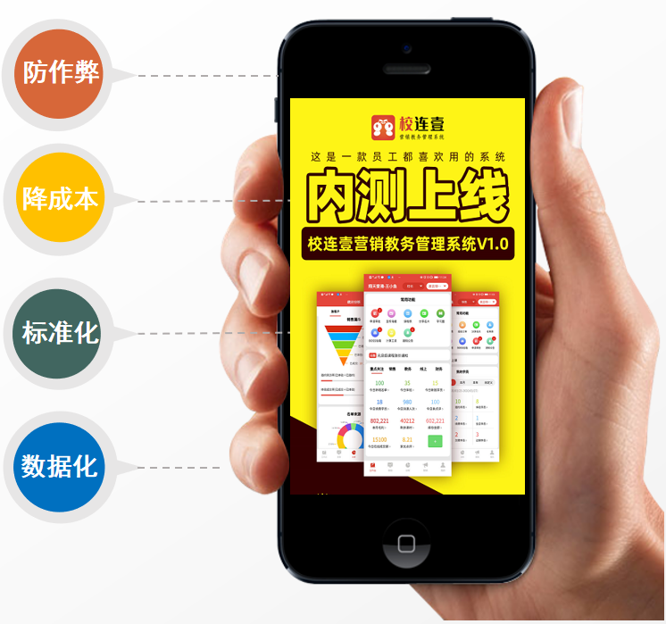 校易通系统是联壹旗下品牌产品之一,专注于为教培行业提供:活动赋能、系统赋能、转化赋能、运营赋能的整体解决方案。